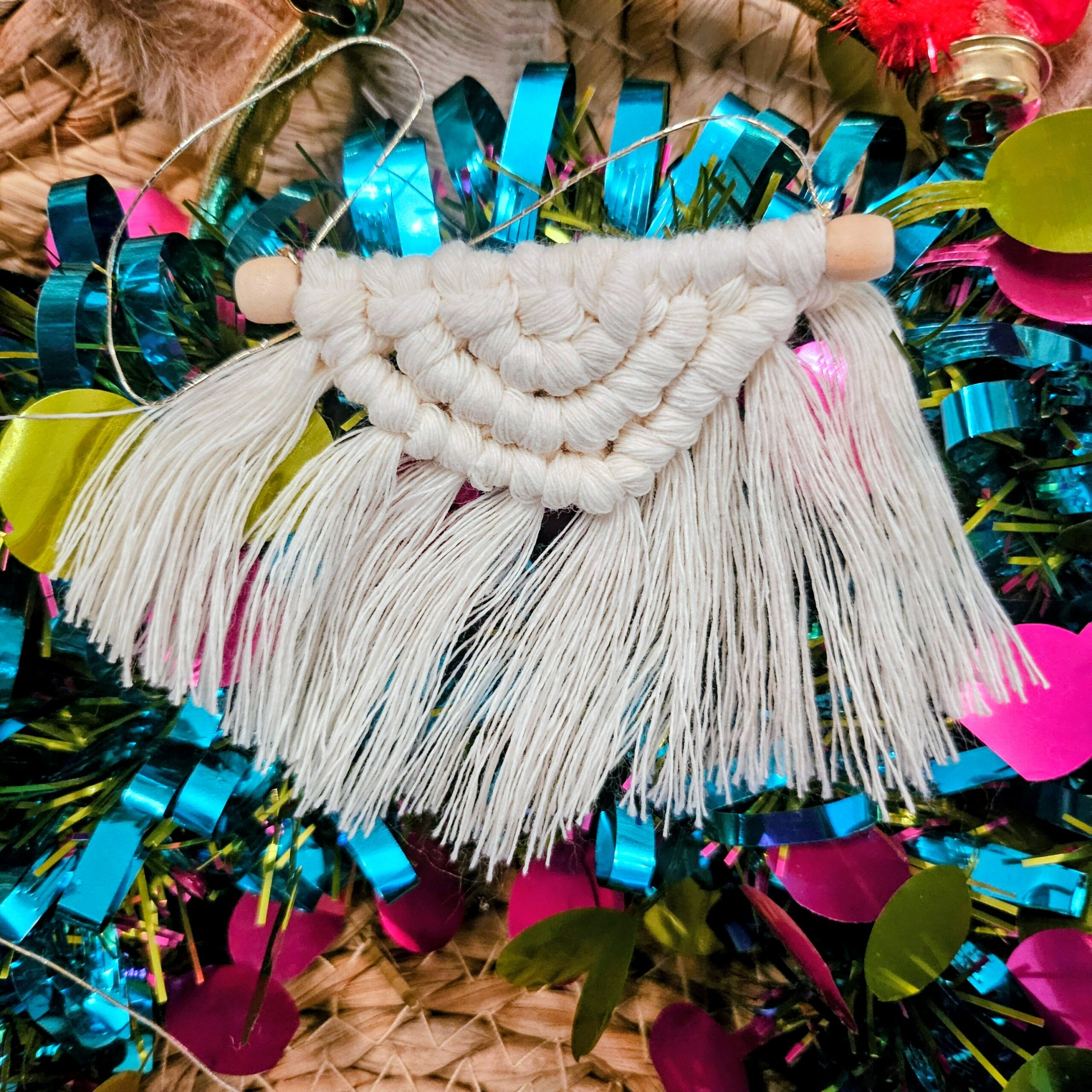 Conçues à la main avec soin, mes décorations allient la douceur du fil tressé au style naturel et tendance du macramé, parfait pour une décoration de fête pleine d’élégance et d’authenticité.